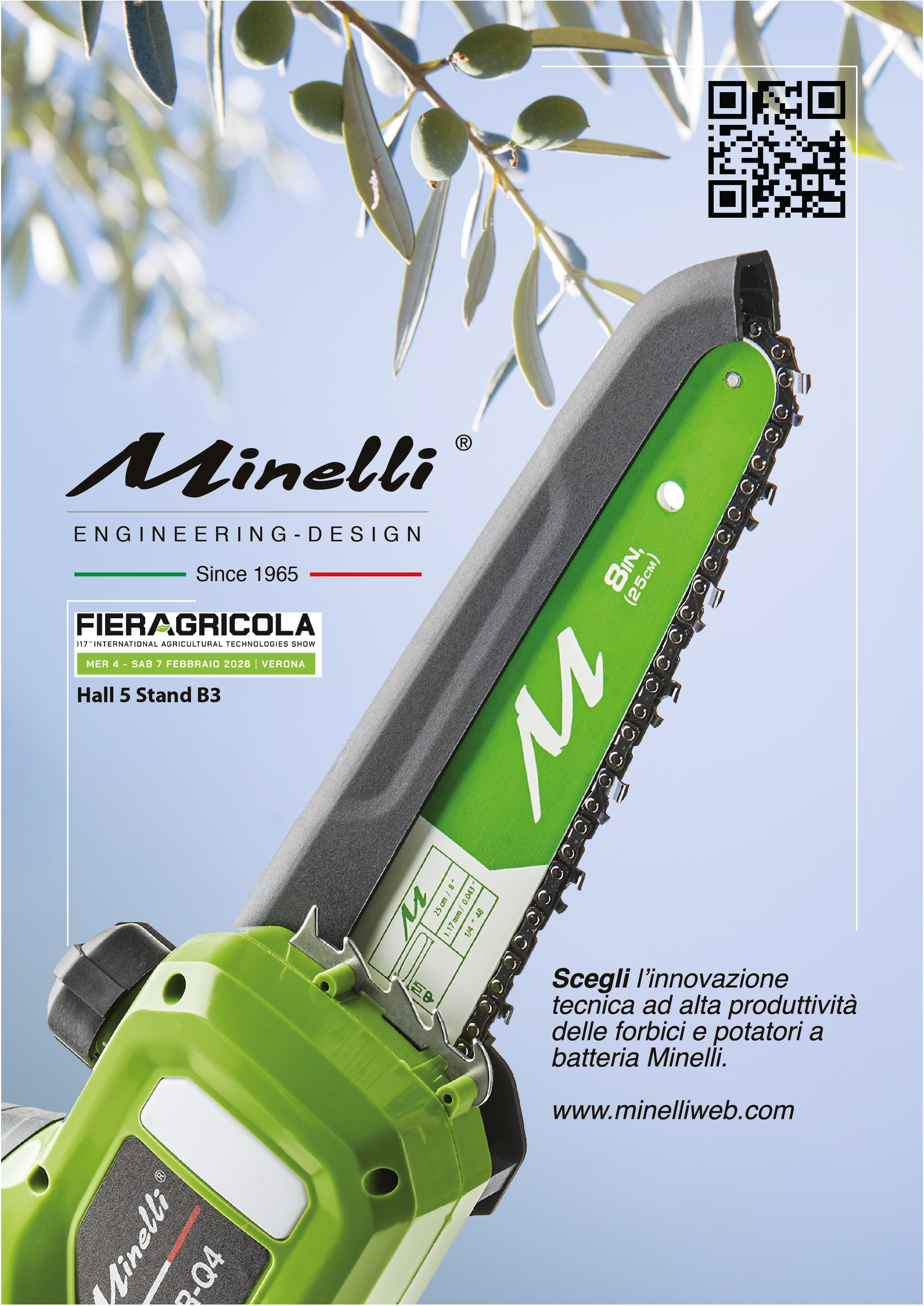 Minelli S.r.l. - Da 60 anni leader nella produzione di nuove tecnologie. Produzione di abbacchiatori per olive, motocompressori, forbici per potatura, potatori, tosasiepi, decespugliatori, batterie ed accessori.