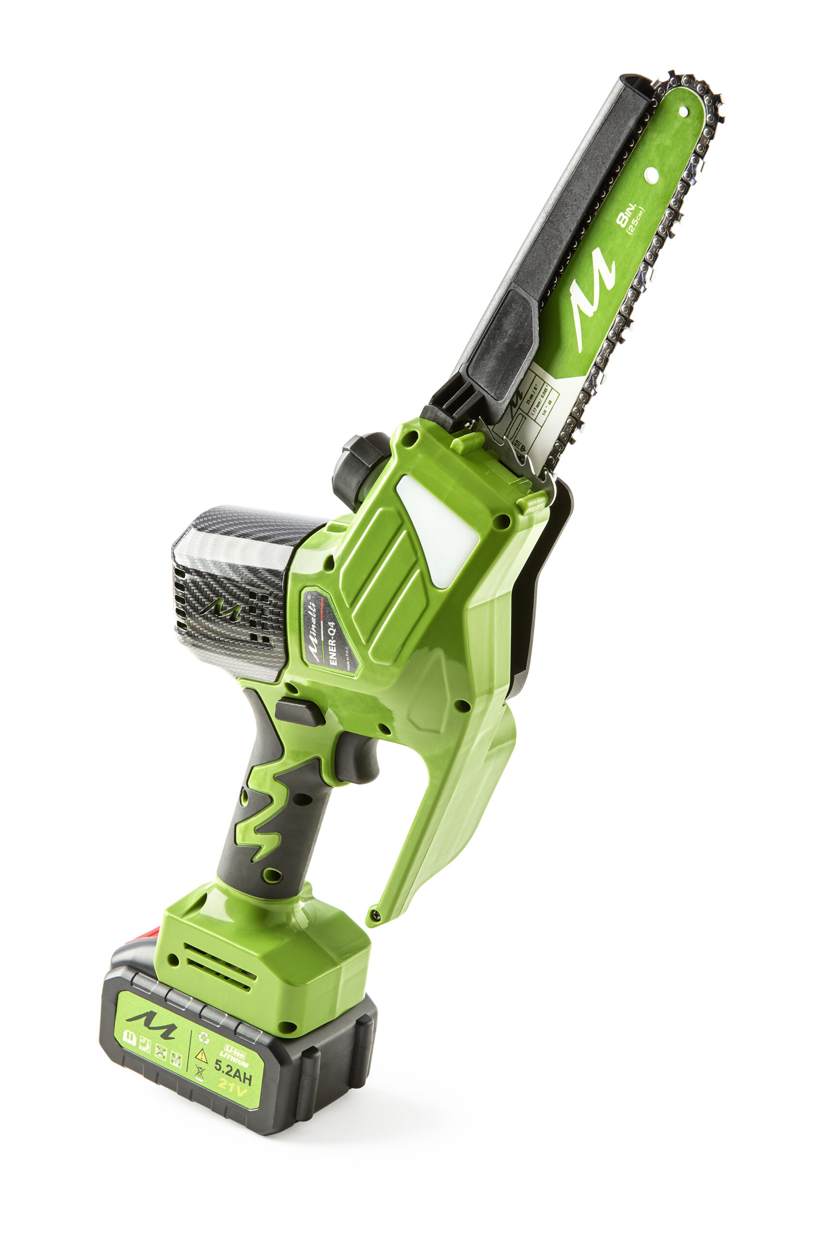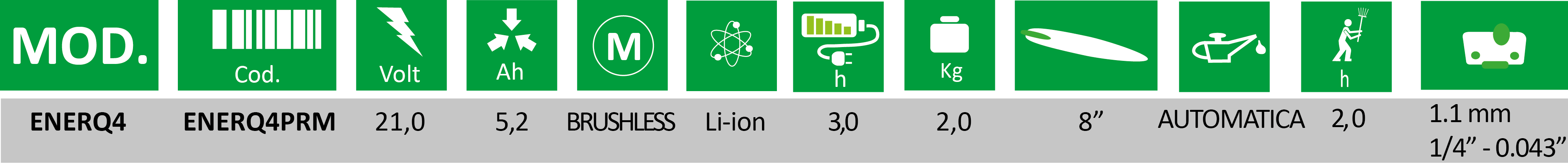 CARATTERISTICHE: L’EnerQ4 Premium è un leggero e potente potatore cordless professionale a batteria, ideale per un utilizzo intensivo. Dotato di motorizzazione BRUSHLESS, lubrificazione automatica, barra da 7” e catena da 1.1 – 1/4 con caratteristiche e performance di taglio paragonabili ad una motosega a motore endotermico.