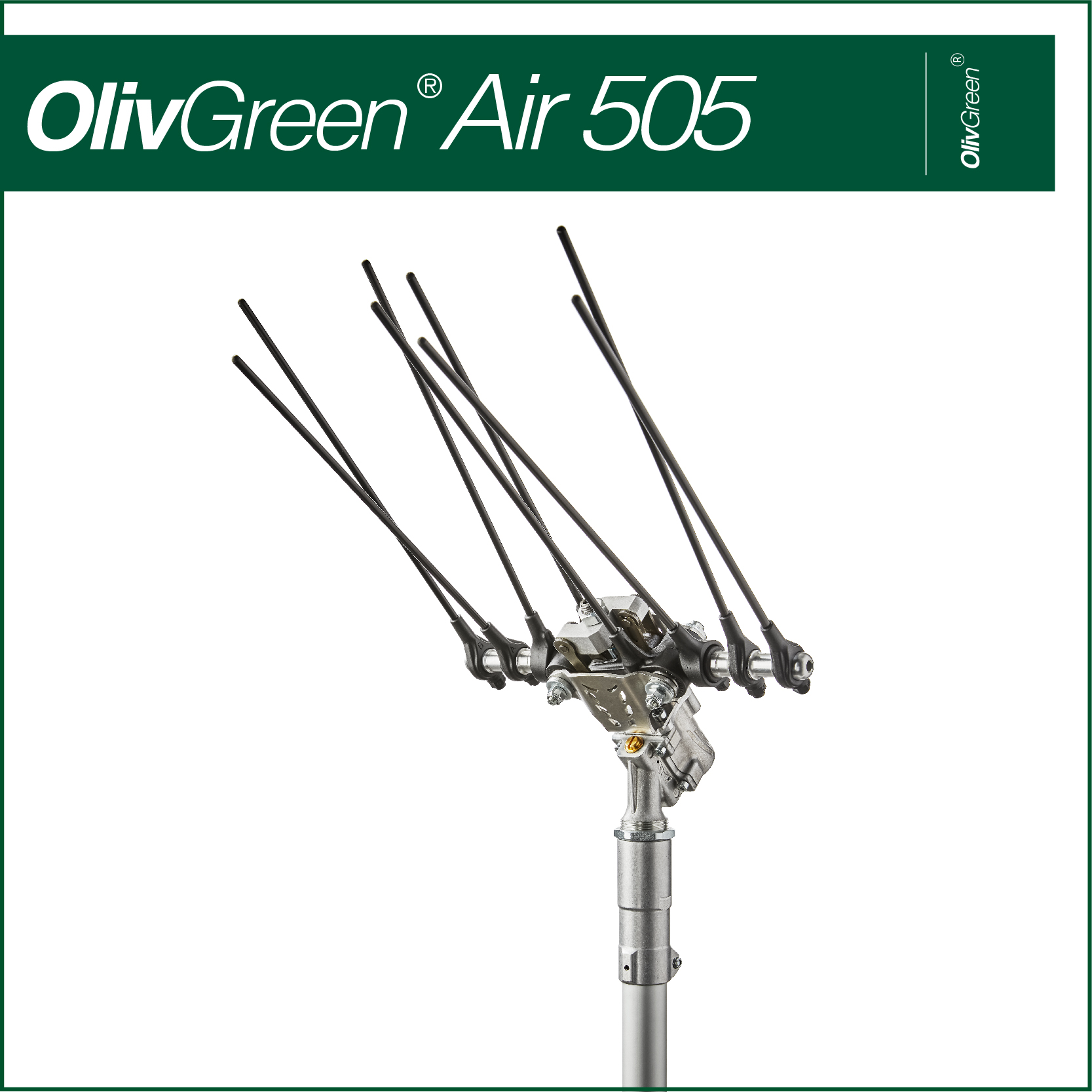 CARATTERISTICHE: L’abbacchiatore pneumatico Olivgreen Air 505 è stato progettato e realizzato per agevolare la raccolta “professionale” dell’oliva ed è realizzato in lega leggera d’alluminio. La distribuzione è garantita dal sistema flottante pistoncino/pastiglia posti a scorrimento su piastrina rettificata. Il movimento contrapposto laterale e la geometria dei rastrelli assicurano ottimi raccolti su tutte le tipologie d’olivo. L’utilizzo dell’Olivgreen Air 505 risulta ottimale impiegato su asta di prolunga serie “AIRA”.